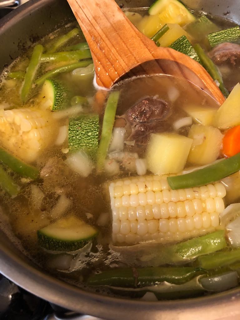 Cocido, or caldo de res, in my own kitchen and ready to serve.  So simple, and so delicious.
