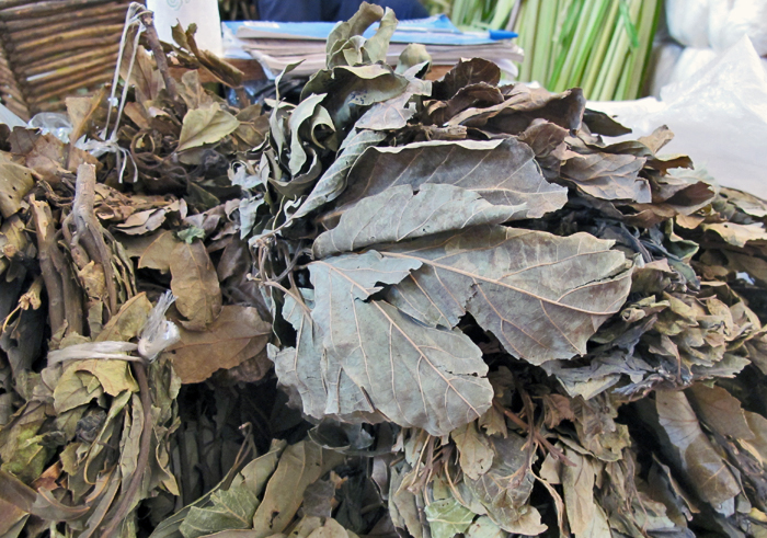Bundles of dried avocado leaves.  Pulverize some in your blender, then cook the resulting powder in a pot of beans to add the leaves' subtle anise flavor.