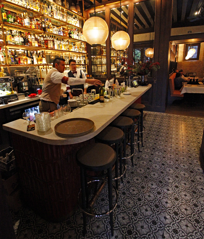 Add the meat, the vinegar, and three cups of the reserved meat cooking liquid. Correct the seasonings and cook with the lid ajar over low heat (or bake covered in a 350° oven) for about an hour. The finished sauce should be thick enough to cover the meat without sliding off the pieces. Correct the salt and serve.