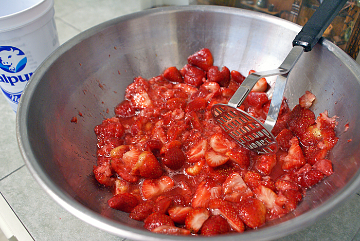 Skin the tomatoes and put them in the blender jar. Add the roughly-chopped onion and chile serrano. Blend until thoroughly puréed.